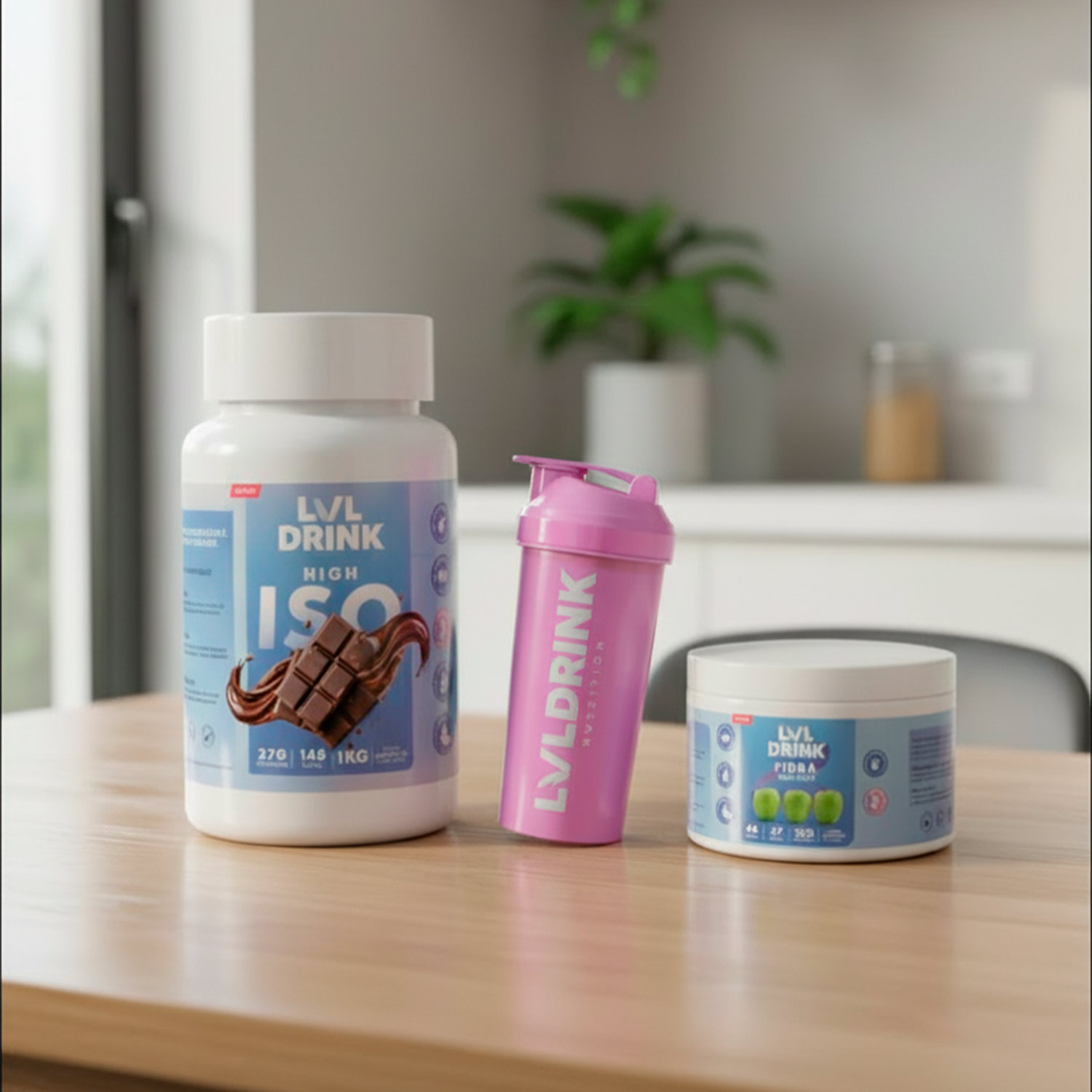El Pack Proteína Chocolate + Fibra Lvldrink combina proteína de suero de leche sabor chocolate y fibra natural de manzana verde, pensado para complementar tu alimentación diaria de forma práctica y deliciosa.