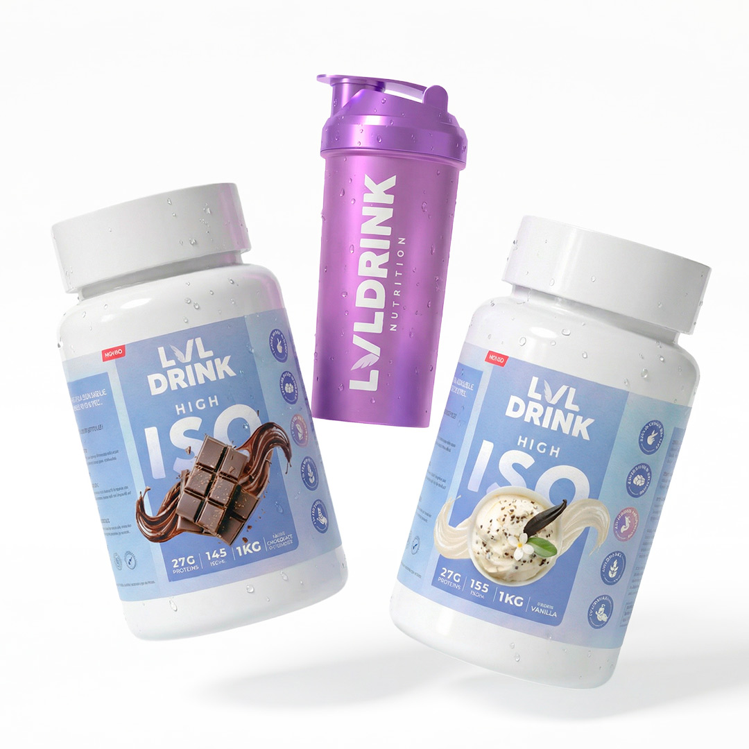 El Pack Proteína Chocolate + Vainilla de Lvldrink incluye 2 envases de 1 kg (uno de chocolate 🍫 y uno de vainilla 🍦) y un shaker de regalo. Cada porción aporta 27 g de proteína, sin azúcares añadidos y endulzada con stevia 🌱, ideal para desarrollo muscular y recuperación post-entrenamiento. Enriquecida con vitaminas y minerales para un bienestar integral.