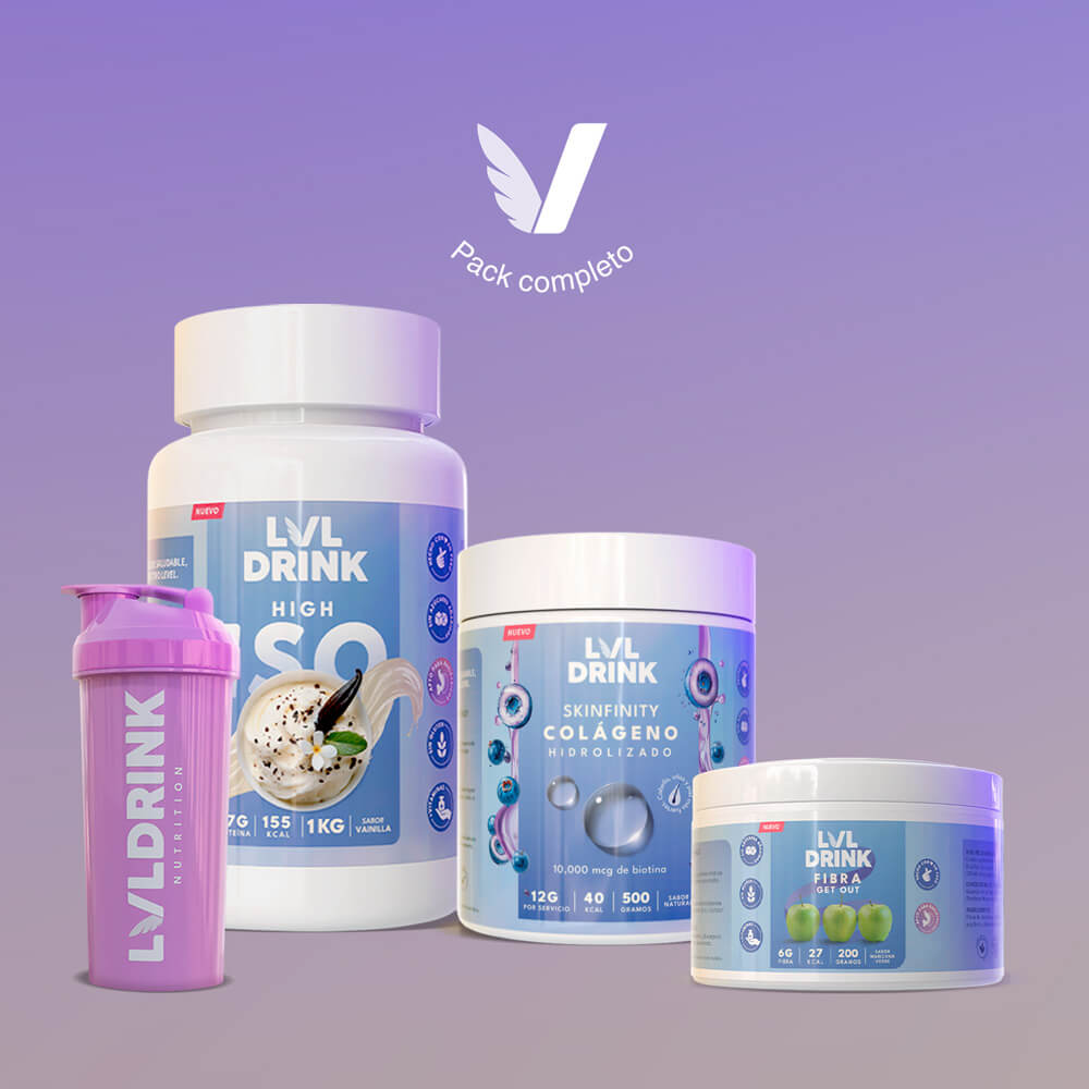 Con Lvldrink Pack Completo, disfruta de nutrición integral para músculo, piel, articulaciones y digestión en un solo pack práctico y delicioso.