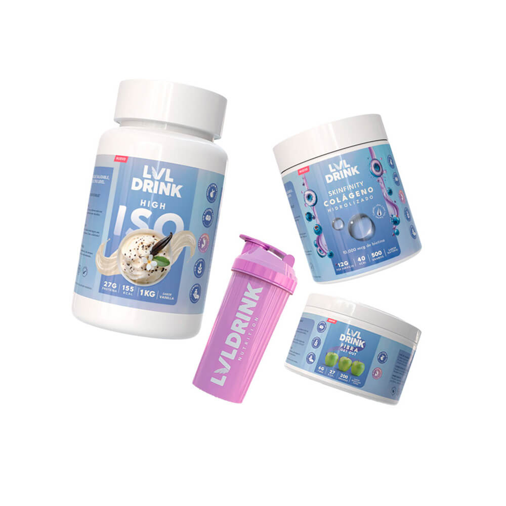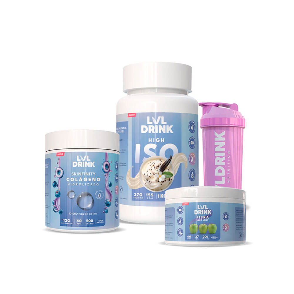 Pack Completo Lvldrink – Proteína Vainilla + Colágeno + Fibra Manzana | Shaker Gratis